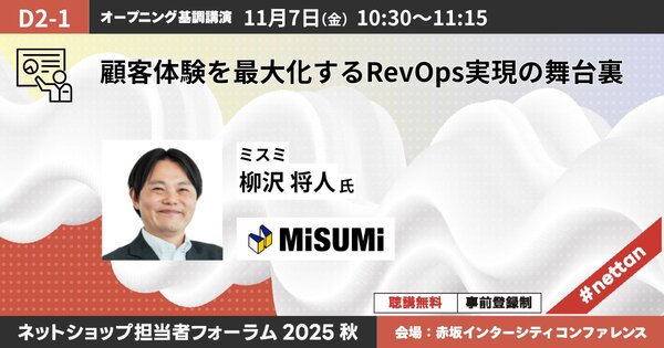 ![]() セッション概要 ワークマンの企業理念は、「声のする方に、進化する。」であり、お客様の声を経営に活かすことを宣言している。 プロフィール 株式会社ReviCo 吉岡 真宏氏 シルバーエッグ・テクノロジー株式会社で約2年間、レコメンドエンジンのセールスに従事。 外資系DMPベンダーでのセールスを経てpopIn株式会社へジョイン。 ネイティブアドのサプライサイドセールスを担当後、EC向け画像検索サービス「popIn Action」の事業責任者に就任。 兼任で「popIn Aladdin」マーケティングと自社EC販促も担当。 その後、SNSマーケ支援会社を2社経験し、2024年10月にReviCoにジョイン。 2025年4月より現職。 プロフィール 株式会社ワークマン 堀 健輔氏 2004年にワークマンに入社し、店長、法人・加盟店営業を経験。フランチャイズビジネスの現場を深く理解。 2017年からはオンラインストア運営を担当。「実店舗補完型EC」のあるべき姿を模索し、実店舗が主体の事業モデルの中でECサイトの役割を確立。 経営理念である「声のする方に、進化する。」を体現するため、ECサイトで店舗在庫の確認・取り置きを可能にし、顧客の機会損失を改善。 新たに製品発表会とECとの相乗効果を高めることにも挑戦。企業成長と課題解決に貢献。 内容レベル 入門、脱初級、中級、上級、大規模店舗向け、中規模向け、小規模店舗向け 続きを読む | ||