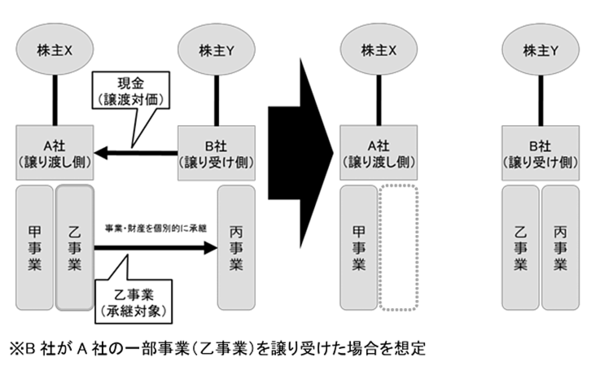 - 事業譲渡:特定事業だけを切り出して売る方法。契約名義変更、従業員の移籍承諾、在庫移転などの手続きが多い代わりに、不要な負債の引き受けを避けられます。複数事業を持つ会社が一部を整理して主力事業にフォーカスする、あるいは財政的に苦境に陥った会社が破綻を逃れる手法として、主力事業を売って負債の返済に充てるということもあります。