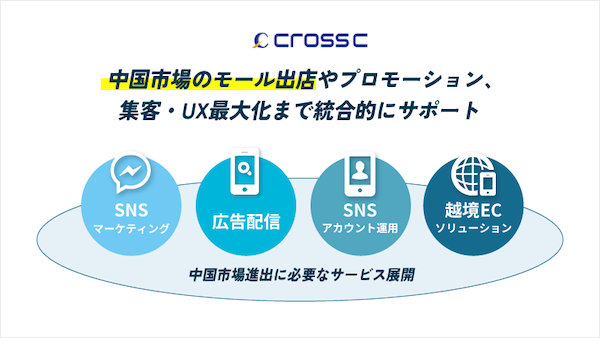 各国のモール出店も支援する。東南アジアは「shopee」「LAZADA」などへの出店プラットフォーム選定からショップ構築支援までを、グローバルEC運営代行のGDXとの連携で展開。中国市場は「Tmall」「Taobao」「RED」などへのモール出店、モール内プロモーションをクロスシーと協力し、最適な支援を提供する。システム構築からKPIの設定やROI分析、費用対効果のモニタリングなど、継続的な改善と事業拡大を支援する。