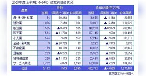 2025年度上期の企業倒産、小売業は7.6%増の594件。全体件数は5172件