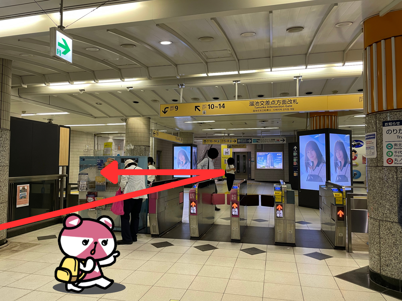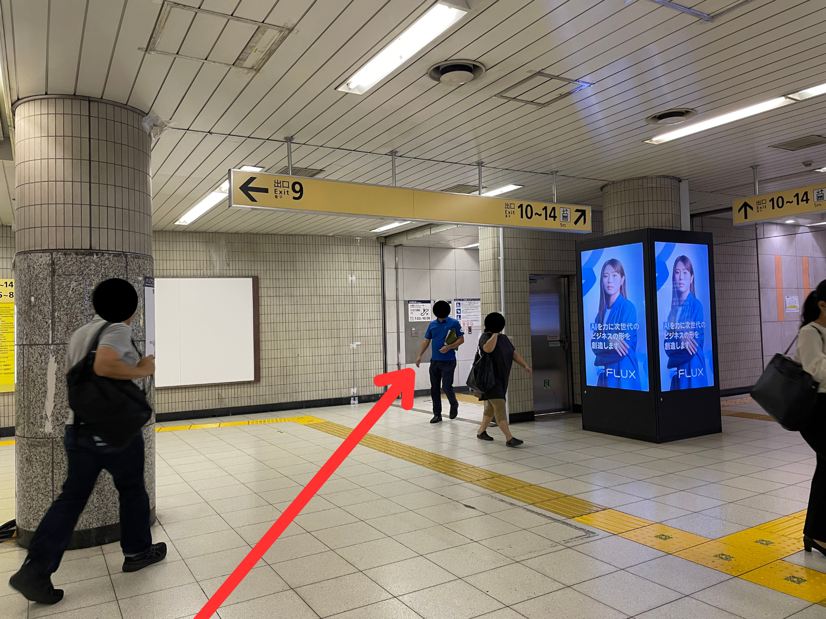 14番出口まで直進です。ここは数百メートルあり、結構歩きます。