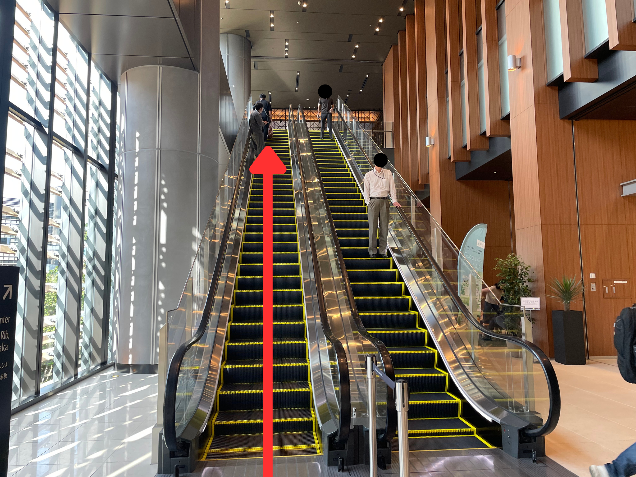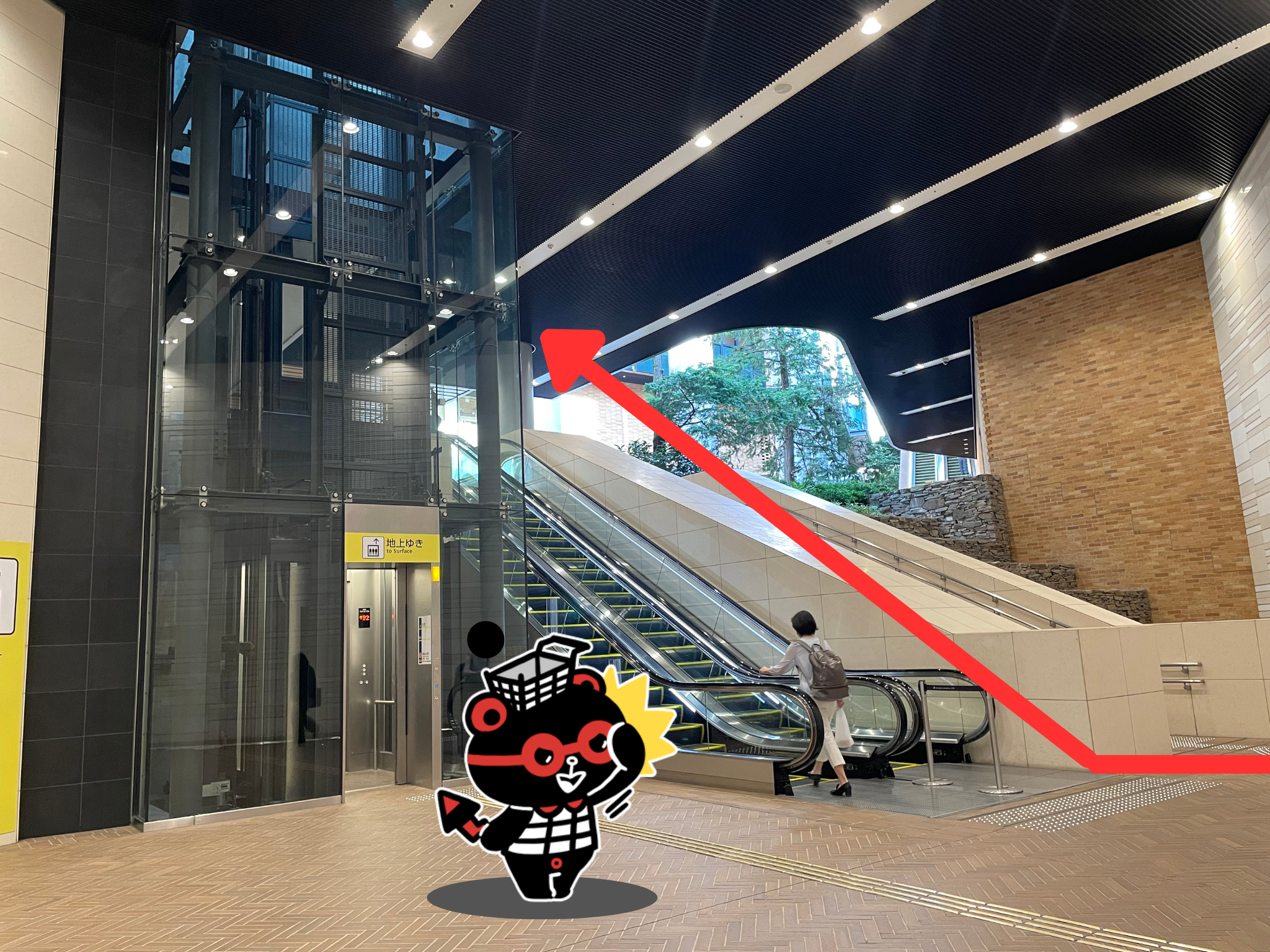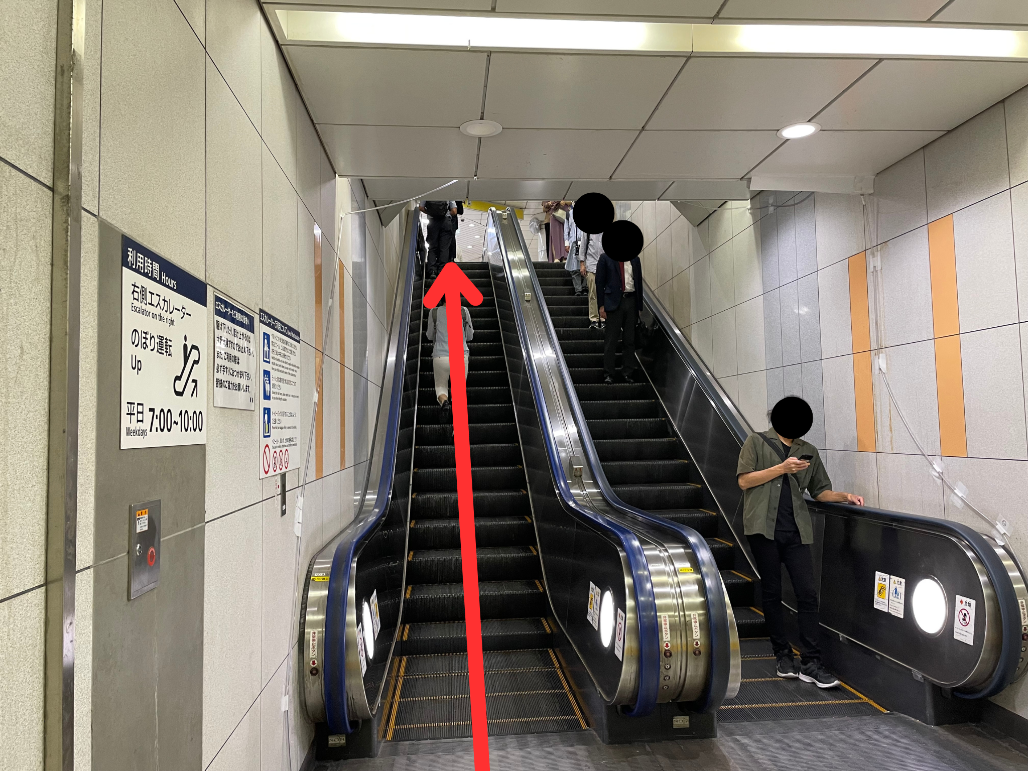 改札を出たら、斜め左方向にあるエスカレーターに乗ります。