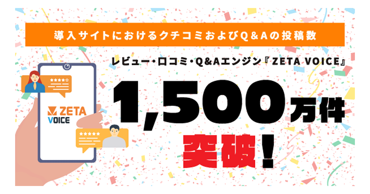レビュー・口コミ・Q&Aエンジン「ZETA VOICE」導入サイトのレビュー、Q&Aの投稿数が1500万件を突破