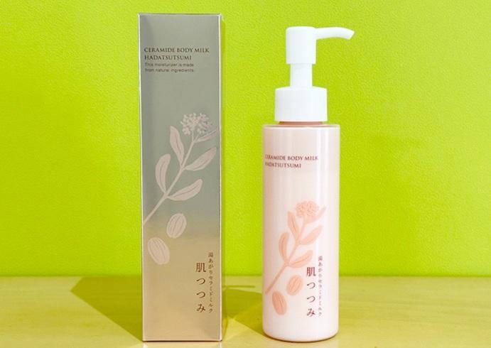 「三相乳化技術」を採用した新商品「湯あがりセラミドミルク 肌つつみ」は、10月28日に発売。価格は税込3080円で、定期コースでは一部割引もある。主な利用シーンは、湯上がり後の濡れた肌に浴室内で塗布して保湿する。三相乳化技術により、従来では難しかったレベルの植物由来オイルリッチ処方(60%)となっている。